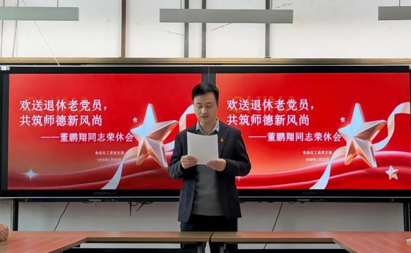 2026年1月22日,我院食品化工系党支部在活动室举办“致敬初心·薪火相传——欢送退休老党员,共筑师德新风