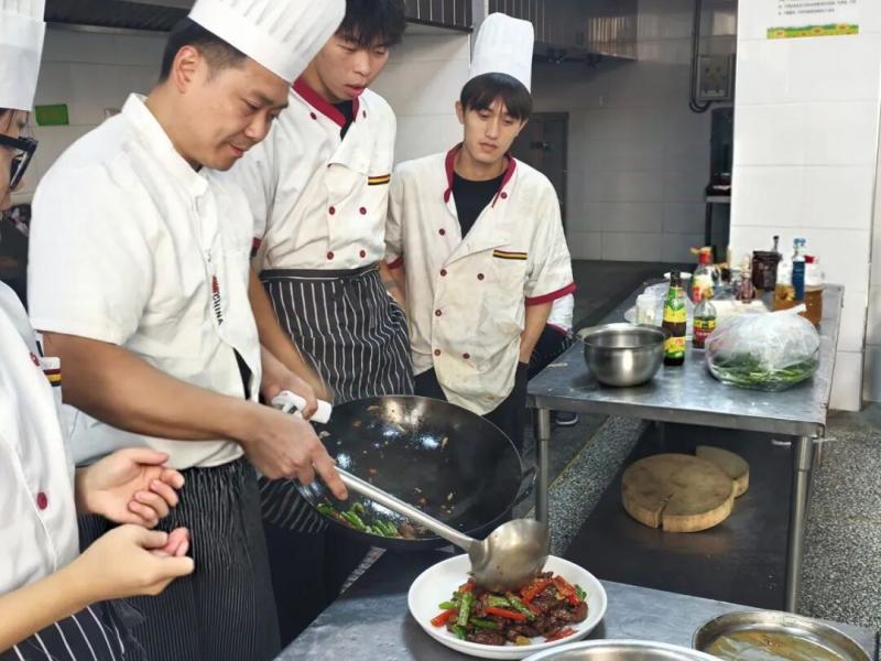 他既肯定同学们短时间内掌握技能的进步,也毫不避讳地指出不足,从 “色、香、味、形” 四个维度给出可落地的改进建议。“一道好菜品,要经得起市场和顾客的检验,既要好吃,更要让顾客愿意‘拍照分享’。” 段老师的话,让同学们瞬间明白 “会做” 和 “做好、做精” 的差距,也对职业厨师的标准有了更深刻的认知。