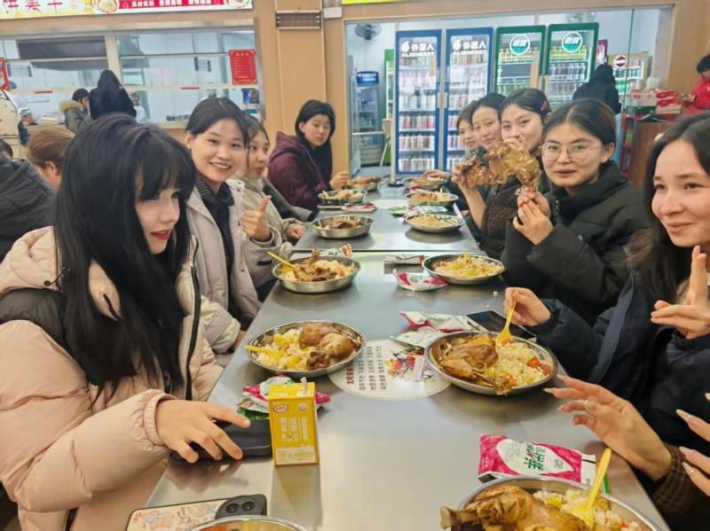 为深入贯彻落实党的二十大精神,进一步铸牢中华民族共同体意识,在学院党委的统一部署和领导下,我院食品化工系全体师生于3月6日在第二餐厅开展“以食为媒润心田,三进两联促团结”活动。师生并肩同坐,同品特色鸡腿抓饭,在烟火气息中拉近距离,在餐叙交流中传递温情,以务实举措践行“以食为媒、润物无声”的育人理念,将思想引领融入日常生活,把关心关爱落到实处。
