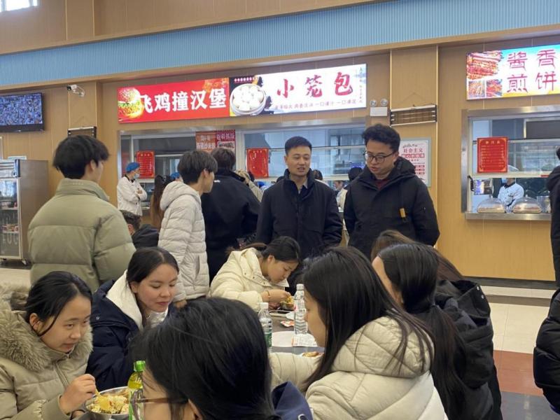 食堂餐桌不仅是就餐场所,更是师生拉近距离、增进了解的重要阵地。活动中,老师们与同学们并肩排队、围坐一桌,在共享鸡腿抓饭的轻松氛围中,细致询问同学们的假期生活、新学期适应情况,耐心倾听大家在课程学习、食宿安排等方面的实际困难与诉求。从饭菜口味到生活开销,从学习节奏到作息习惯,老师们以朋友的身份融入学生群体,以长辈的关怀回应学生期盼,全面掌握学生的日常生活状态与学习适应程度。