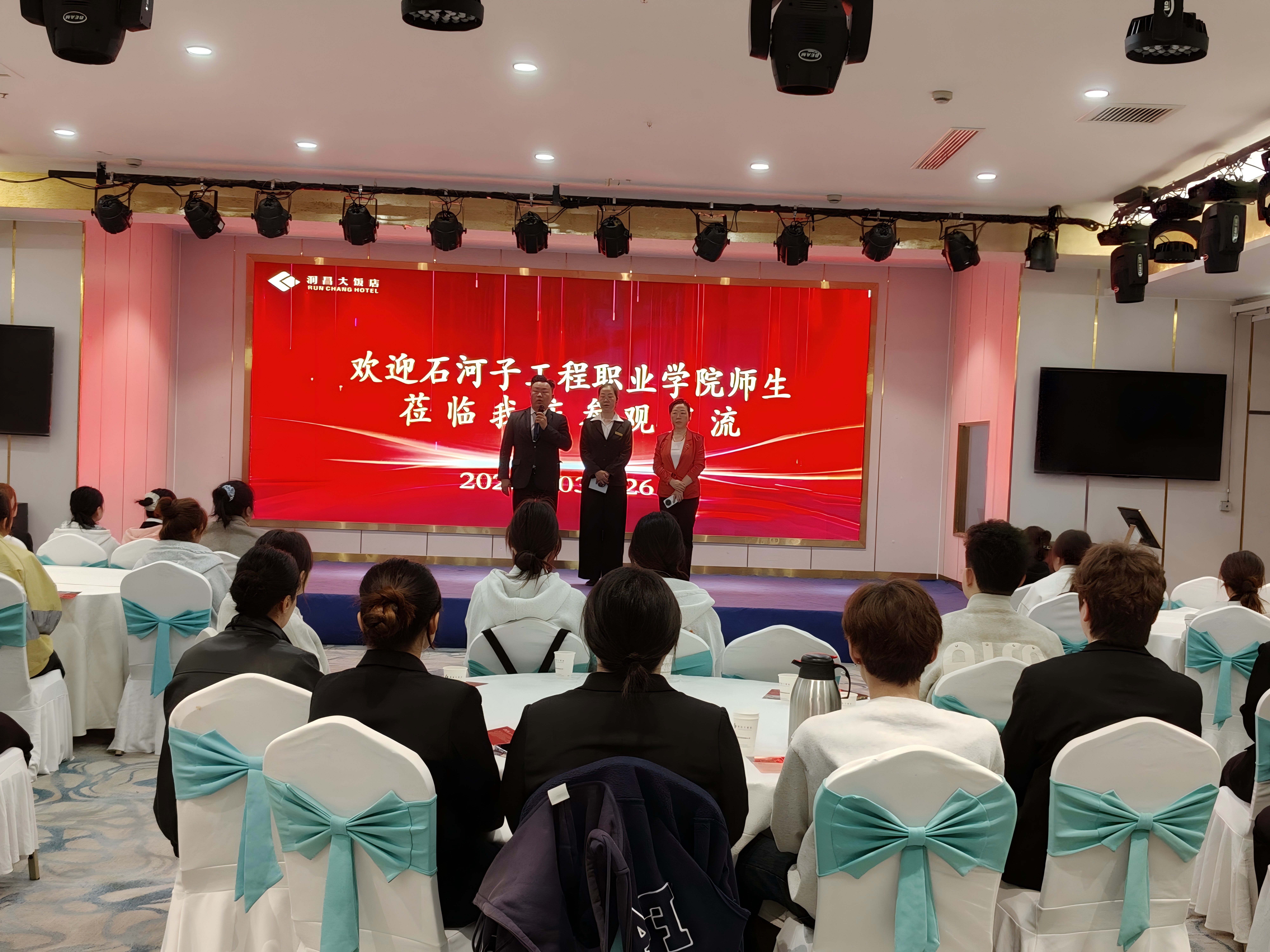 2026年3月27日上午10时,酒店高24-1班、酒店高24-2班的同学们怀着对酒店行业的期待与好奇,在专任教师张疆红、蔡元薇的组织下,乘坐学校大巴前往校企合作单位——新疆润昌酒店有限公司。抵达酒店后,酒店经理陆遥热情迎接,向同学们介绍了酒店的发展历程、企业文化及参观注意事项。